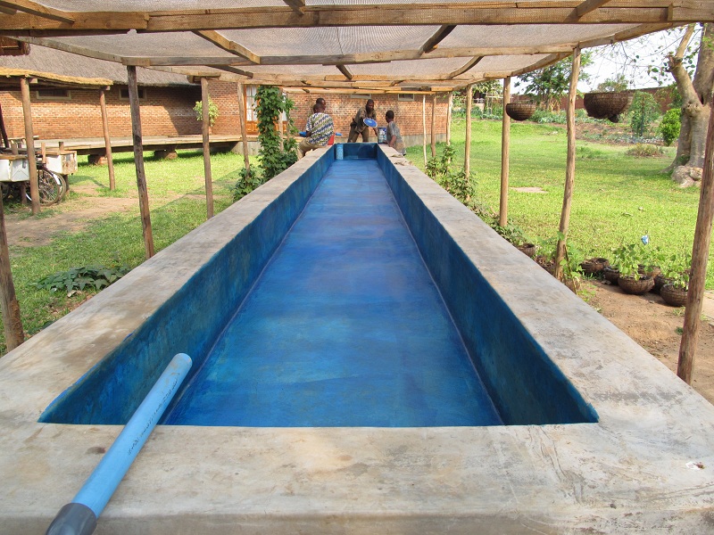 After the paint was dry and pipes installed we filled the grow-bed back up with rock and then filled the whole thing was filled with water. Dennis was able to find real tilapia at the agriculture college in Bunda for a great price. So after he and Dyton went and picked them up we installed the fish and waited again to see what would happen.