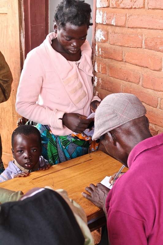 When we arrived there were about 300 people already in line and ready to go. After a hurried set-up the clinic was in business. Once again, Nevison and Sandram checked the patients in, volunteers weighed and did blood pressures, the clinical officers diagnosed, and Becky and Carson distributed the meds.